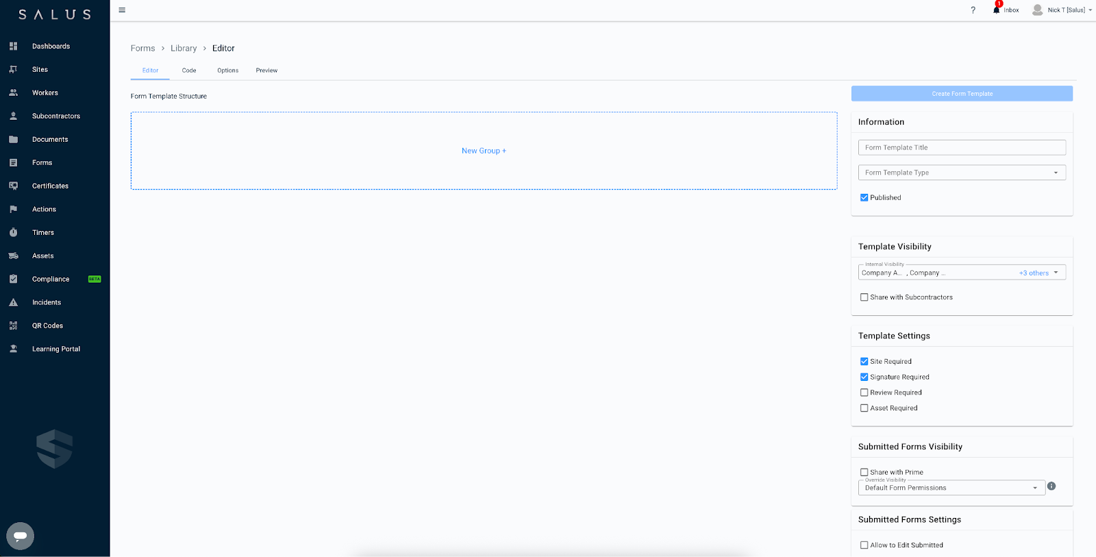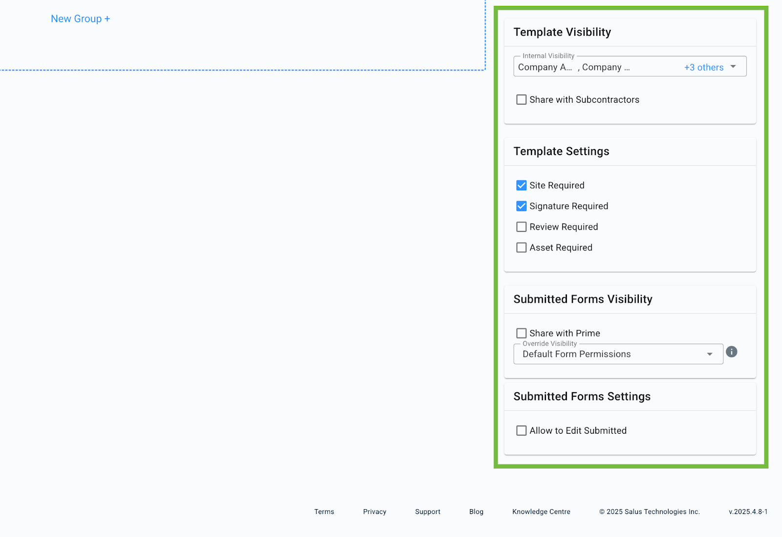 You’ve now seen every step involved in building, customizing, and publishing a form template in Salus. From adding groups and fields to setting who can view, complete, or approve your forms, you have full control over how your forms look and behave.