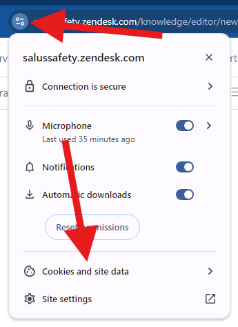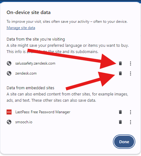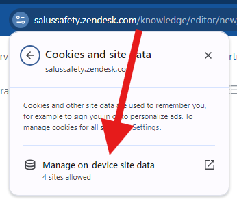 Hard Cache Clearing: To clear all cached data for a site, select the "site information" icon (two-line icon with dots in Chrome, padlock icon in Edge), then choose "Cookies and Site Data" and "Manage on-device site data" (Edge will prompt to clear). Finally, click the trash can next to the website data.