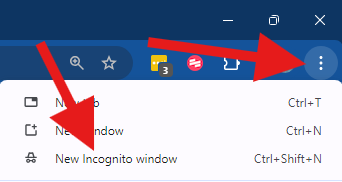 Alternatively, click the three dots in the upper-right corner and select New Incognito Window.