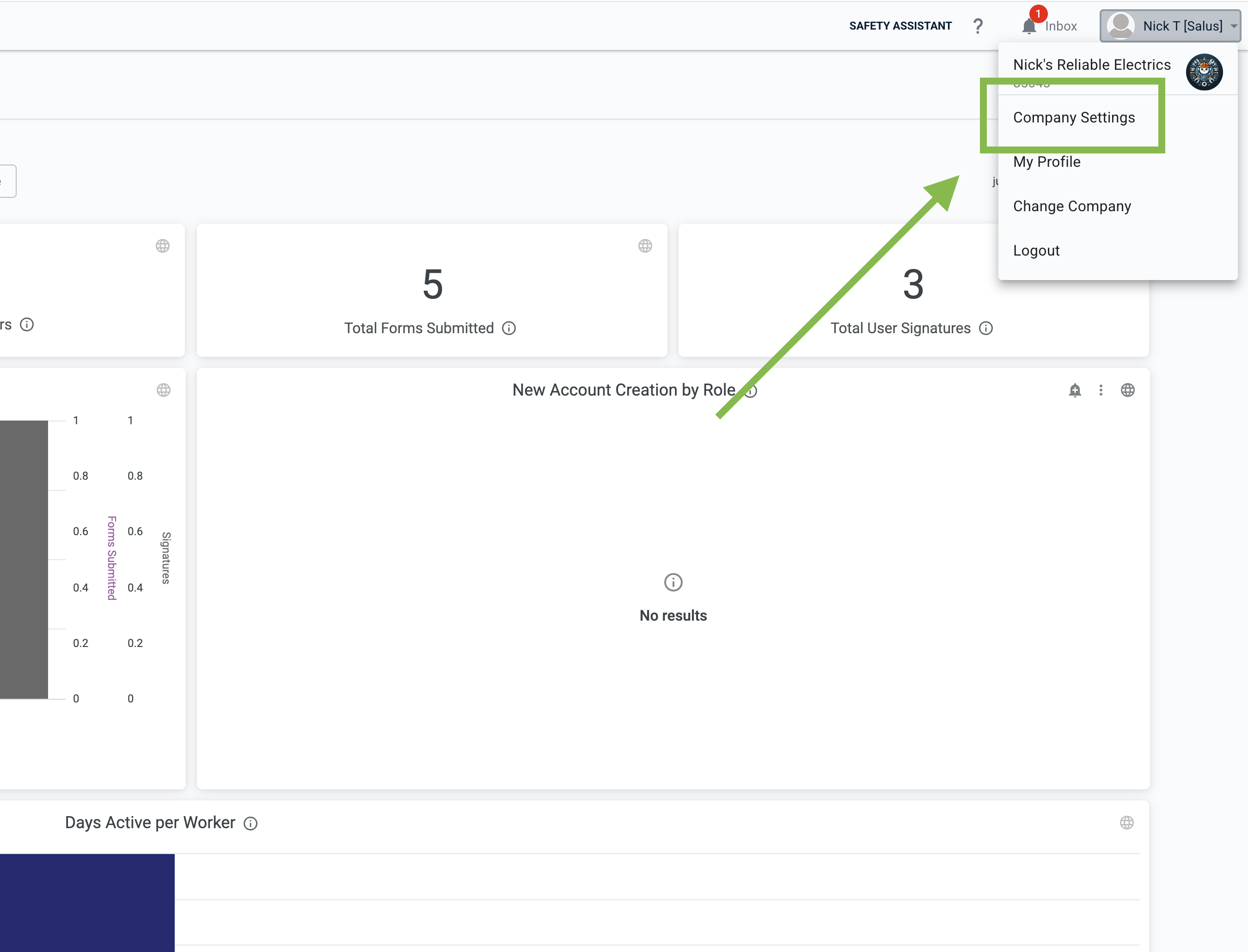 Select Company Settings from the dropdown menu