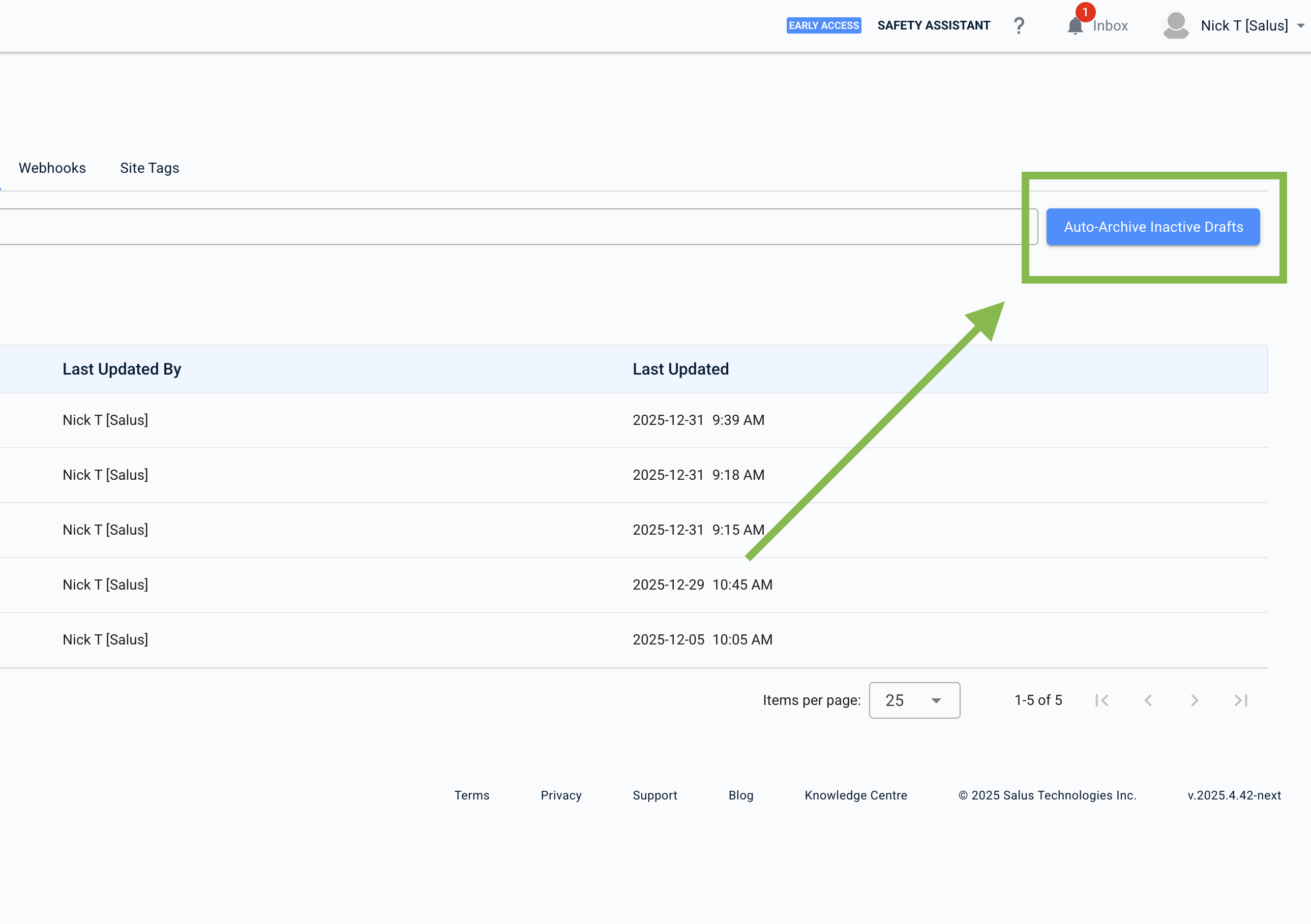 Click the blue Auto-Archive Inactive Drafts button