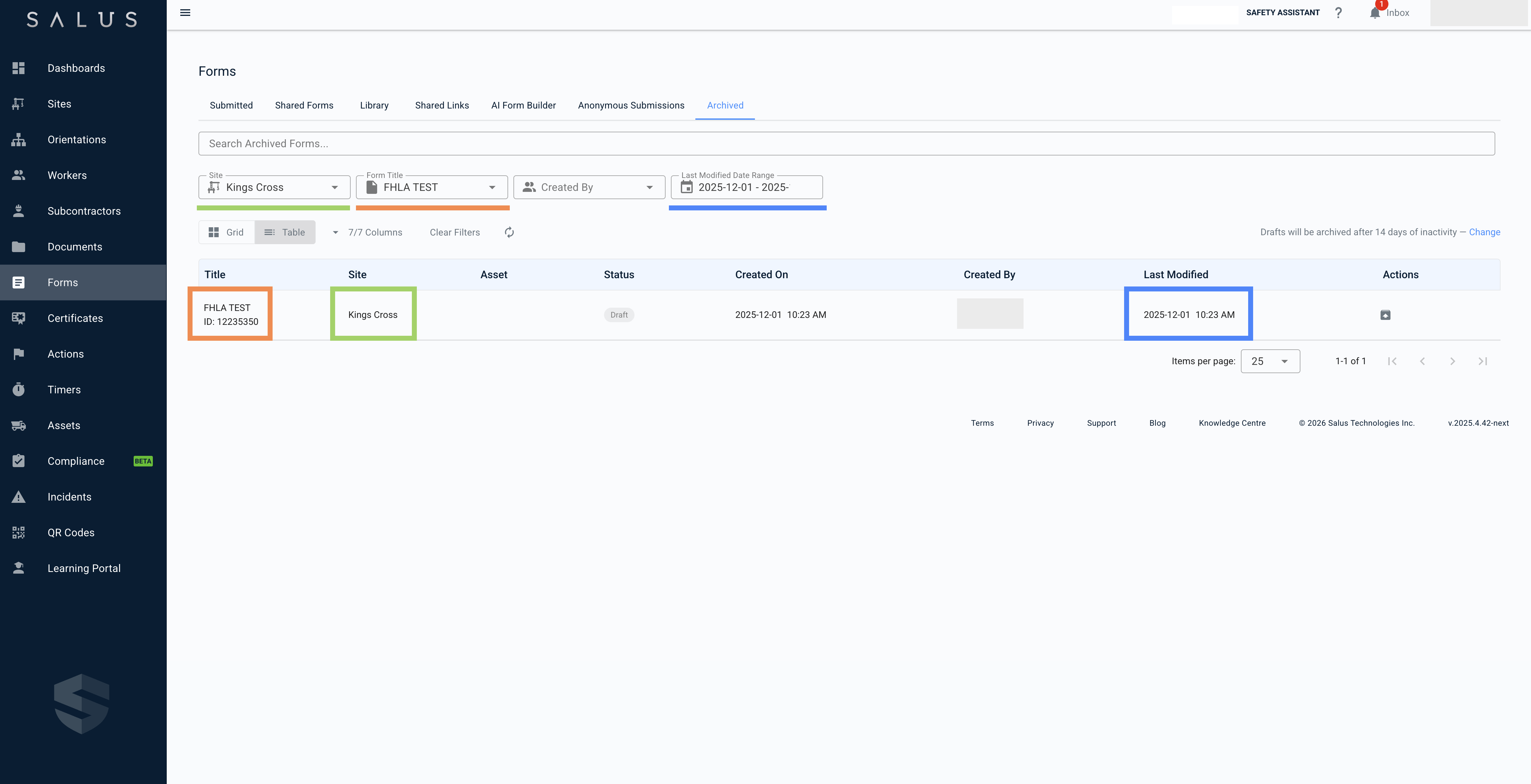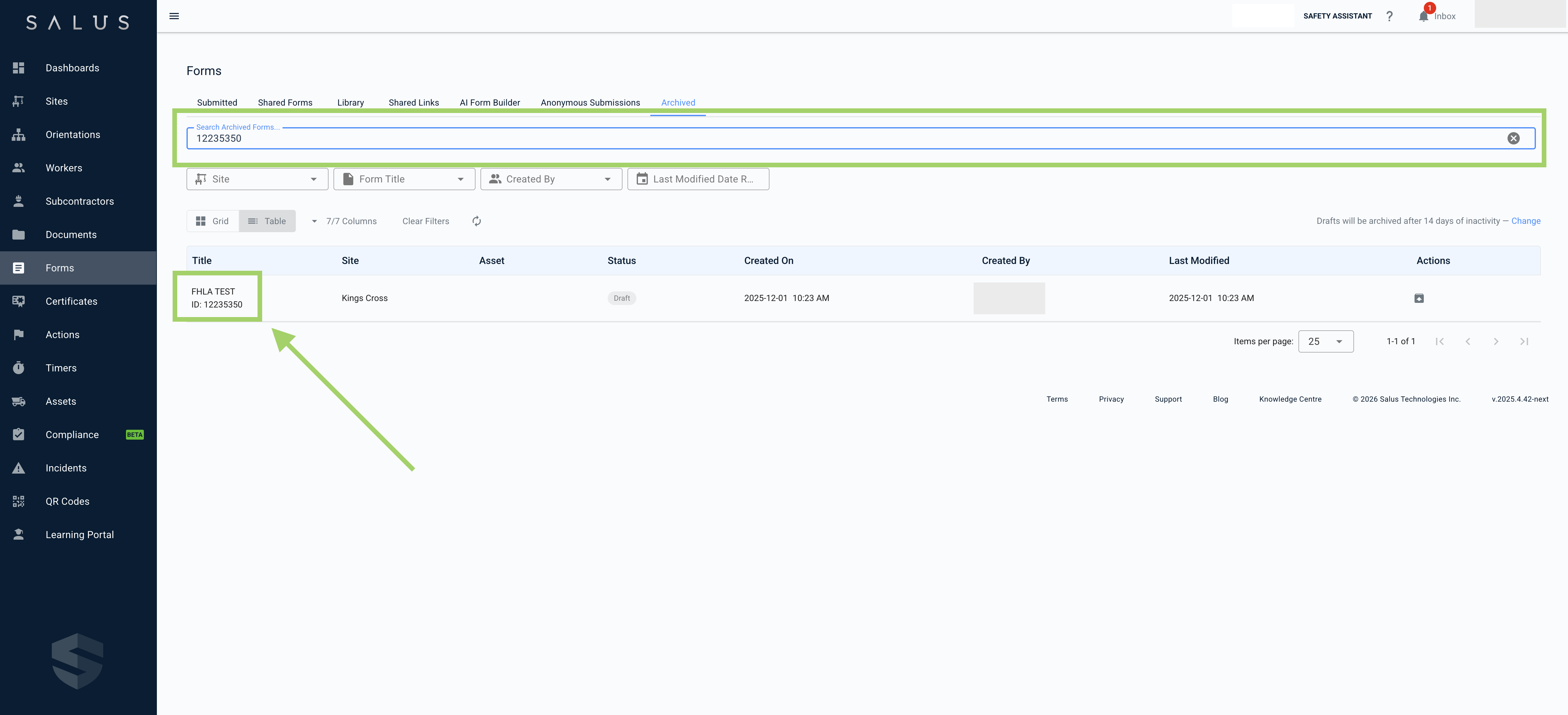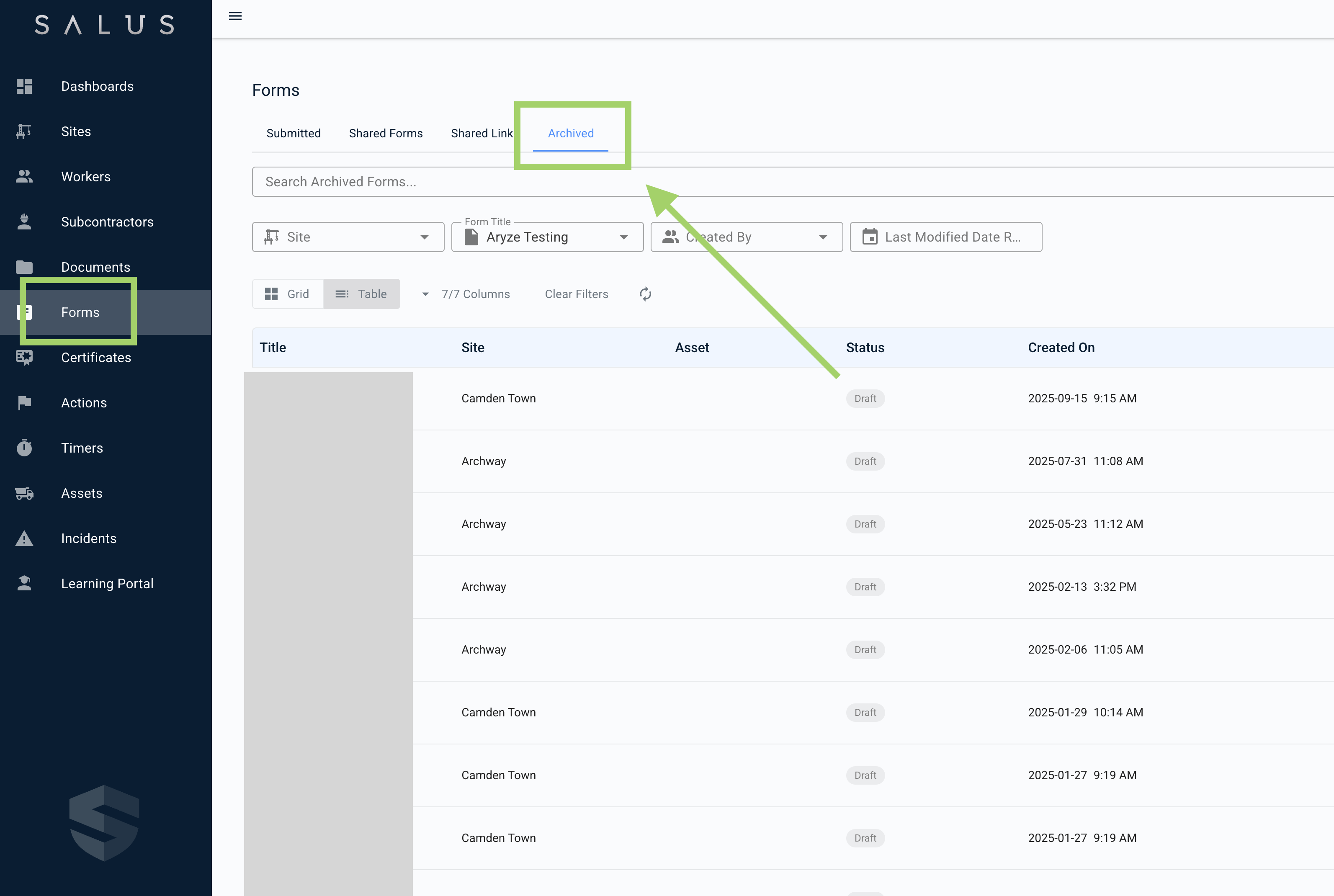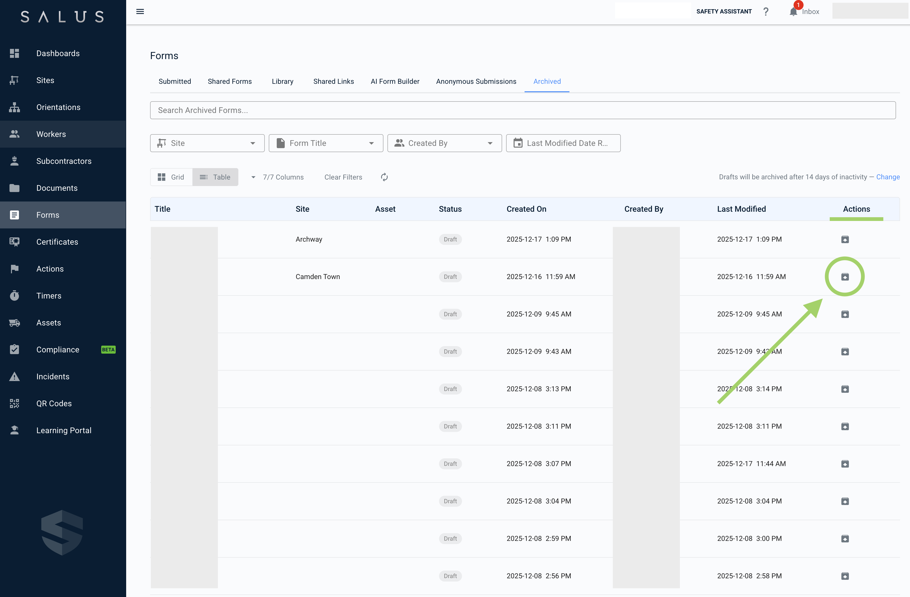Archived forms are only visible if you have permission to access the site they’re associated with. Site Access users will only see archived drafts for sites they have access to, while Company Admins can see all archived forms across the company.