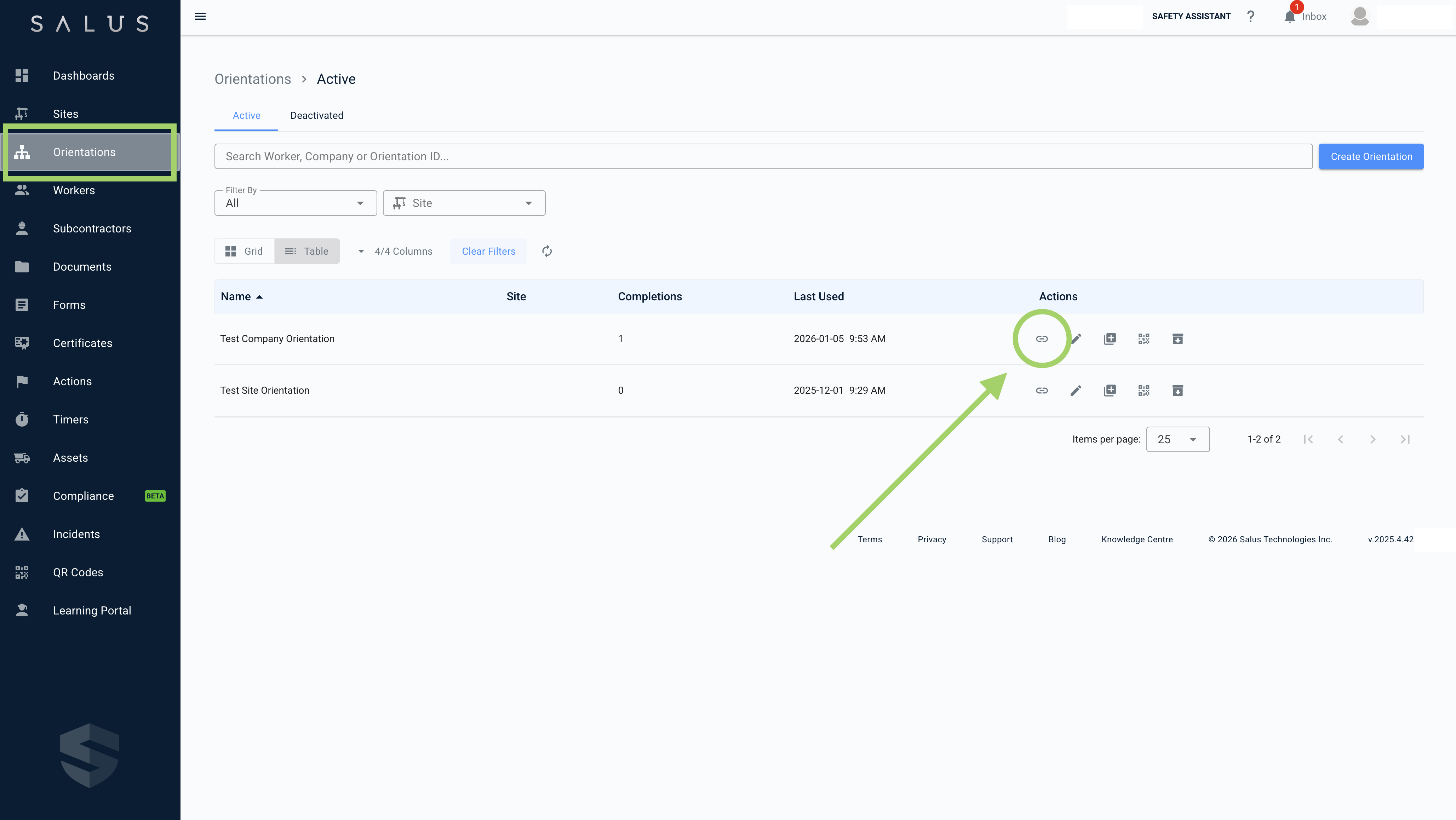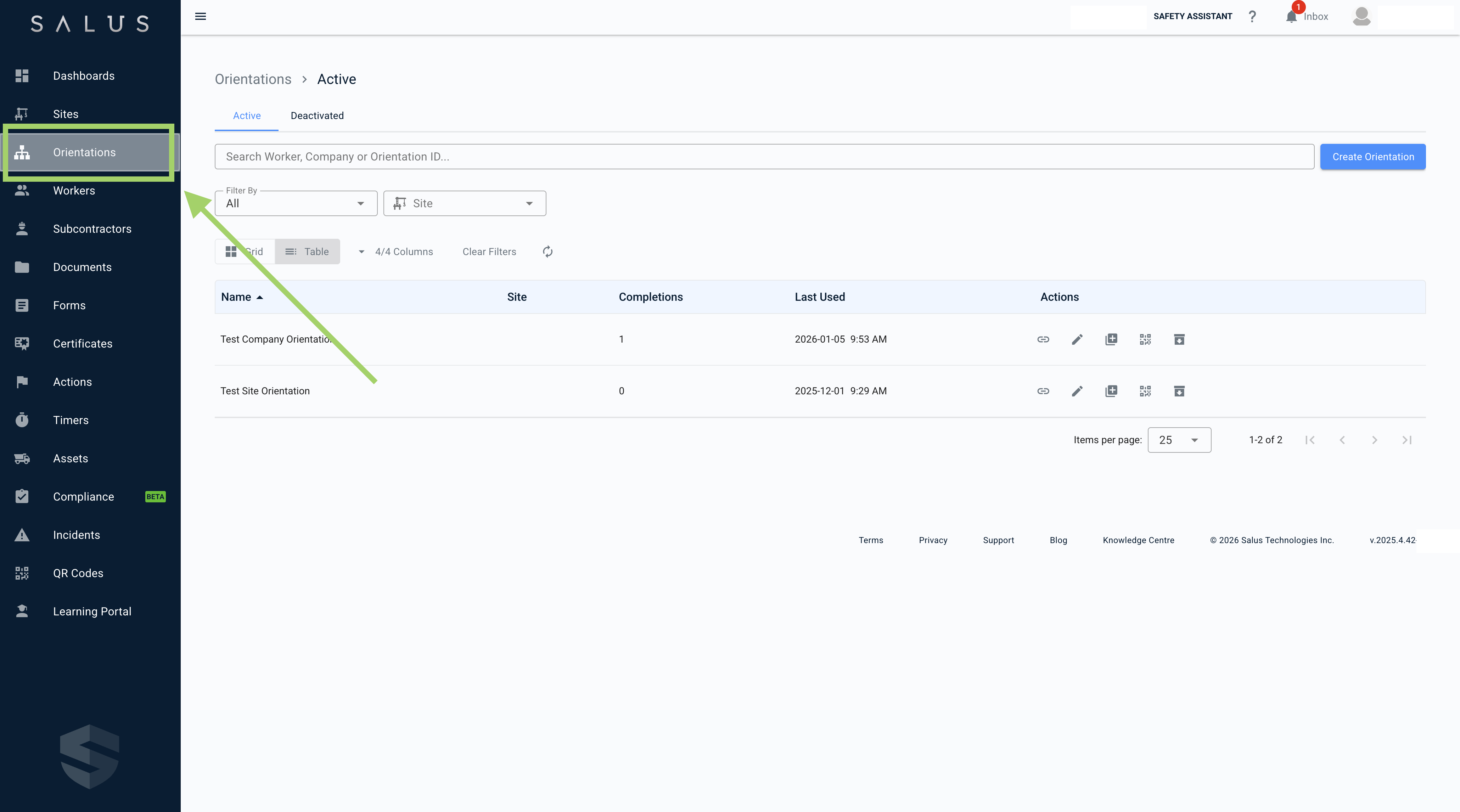 From the Orientations page, you can view and manage all orientations, including both Site and Company Orientations.