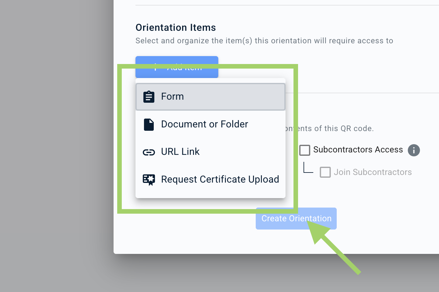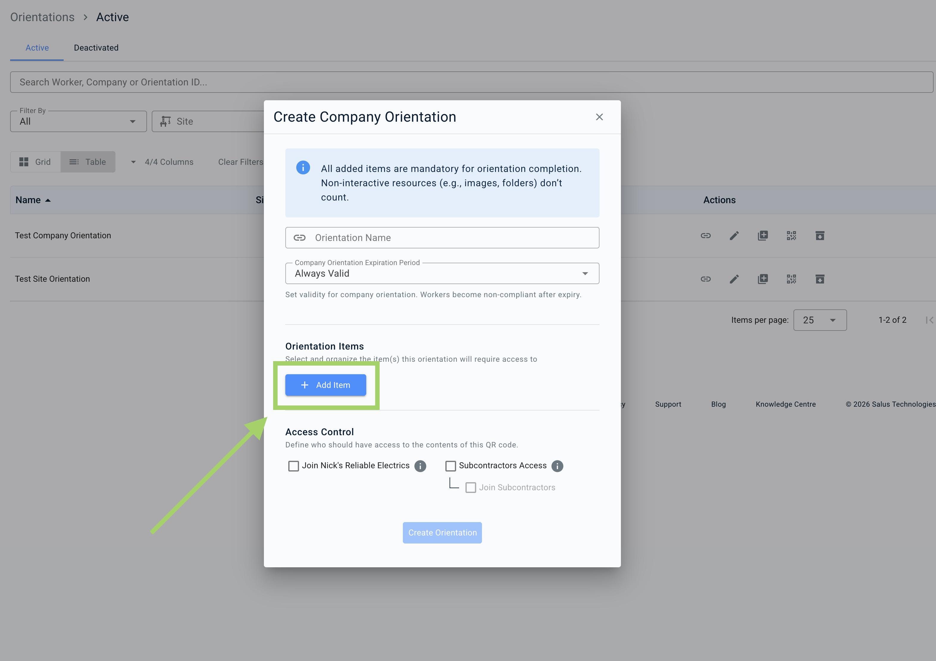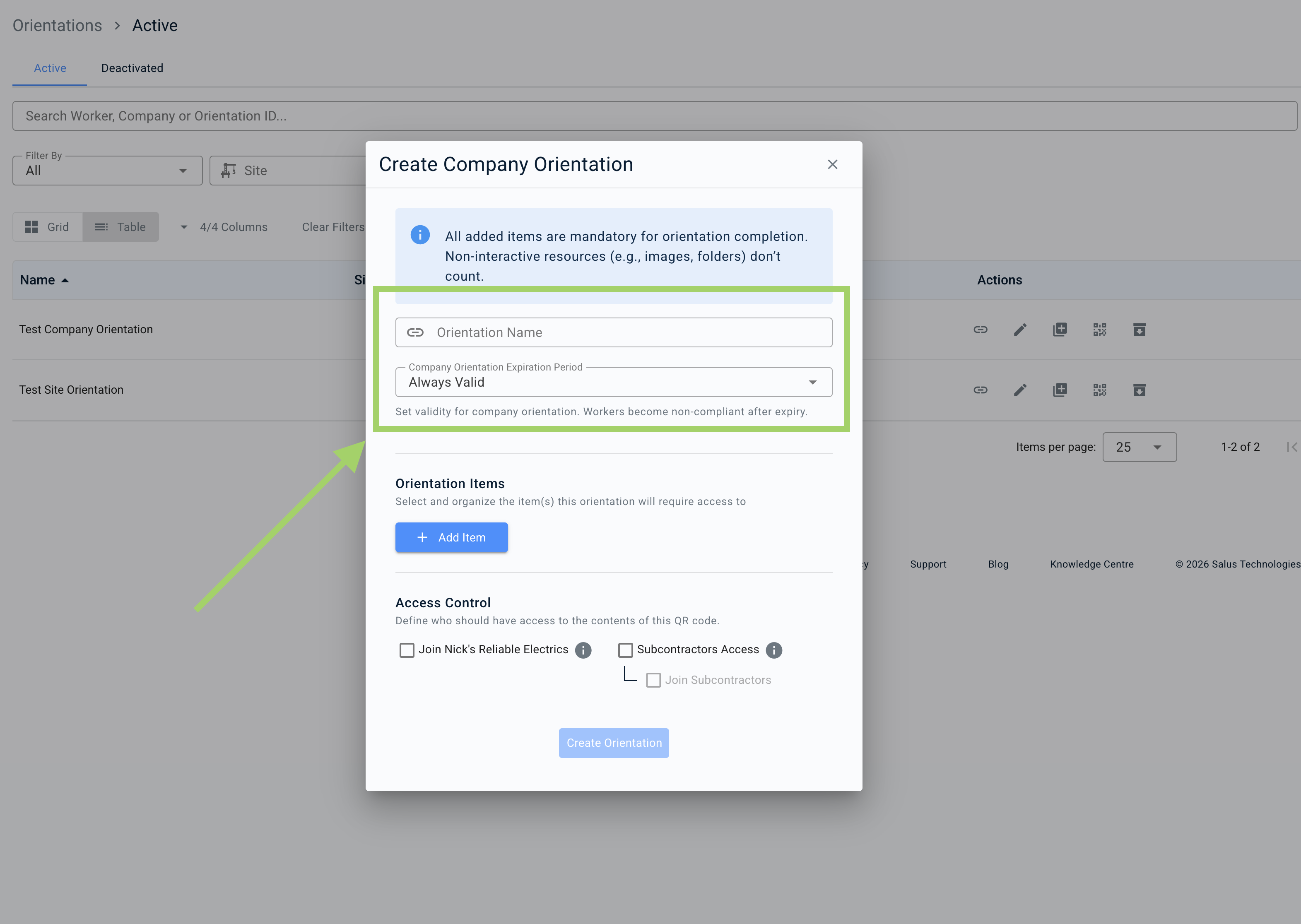 After setting the name and expiration, you’ll add Orientation Items. These define what a worker must complete.