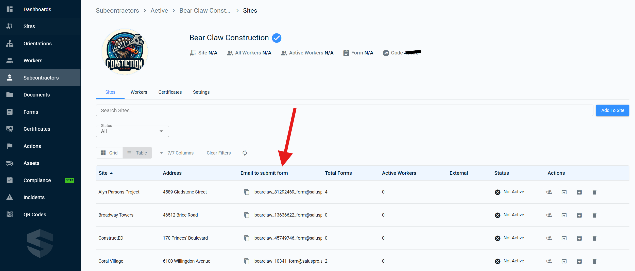 Send the email to your company’s assigned Salus email address for this site.