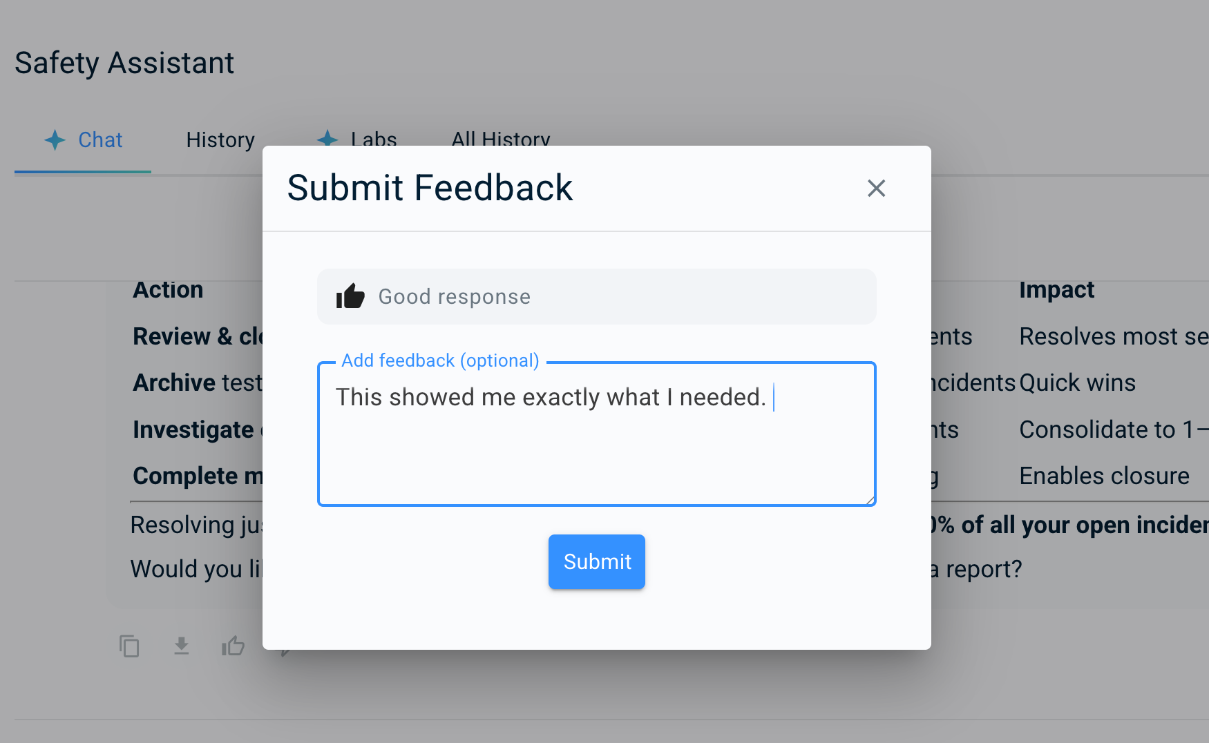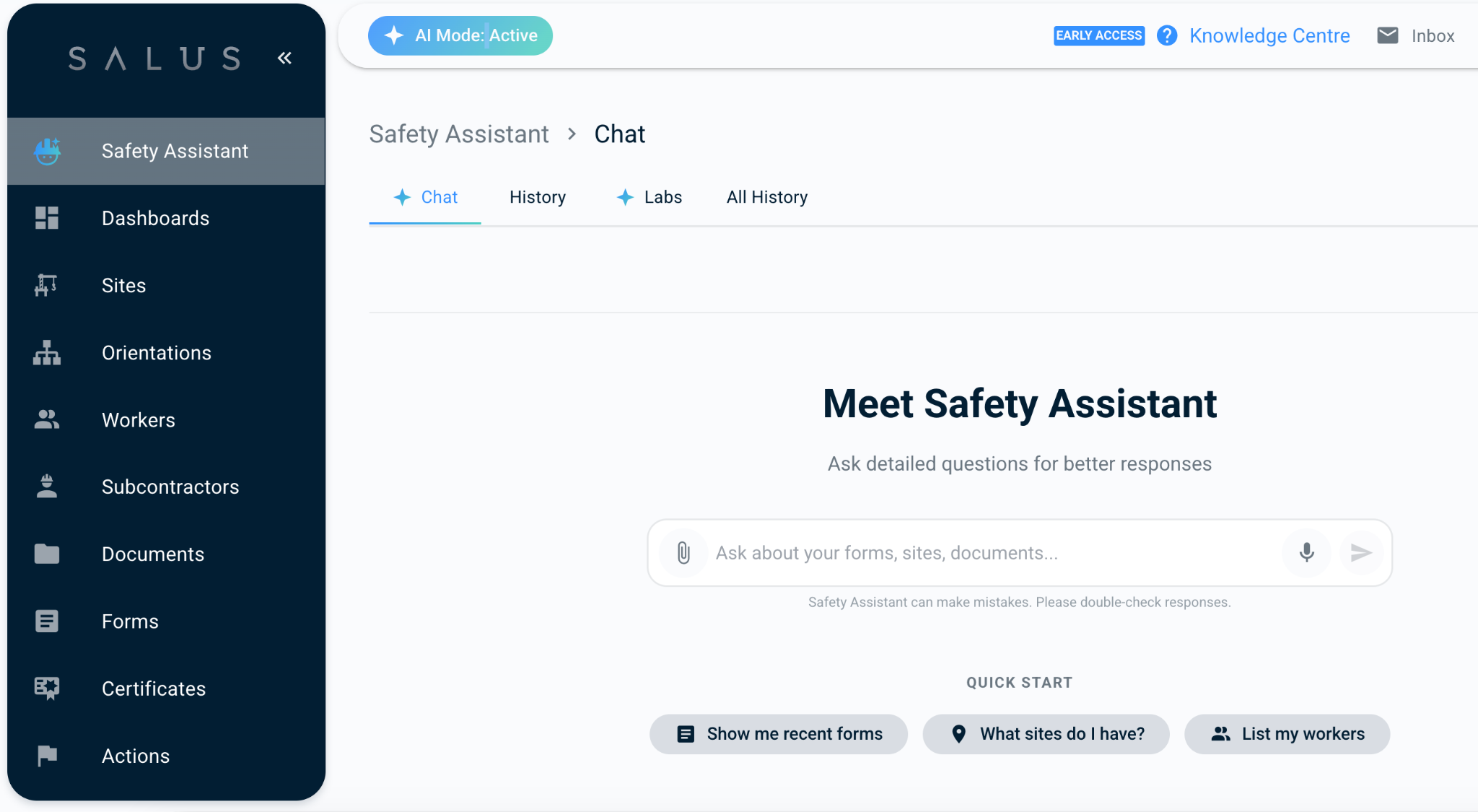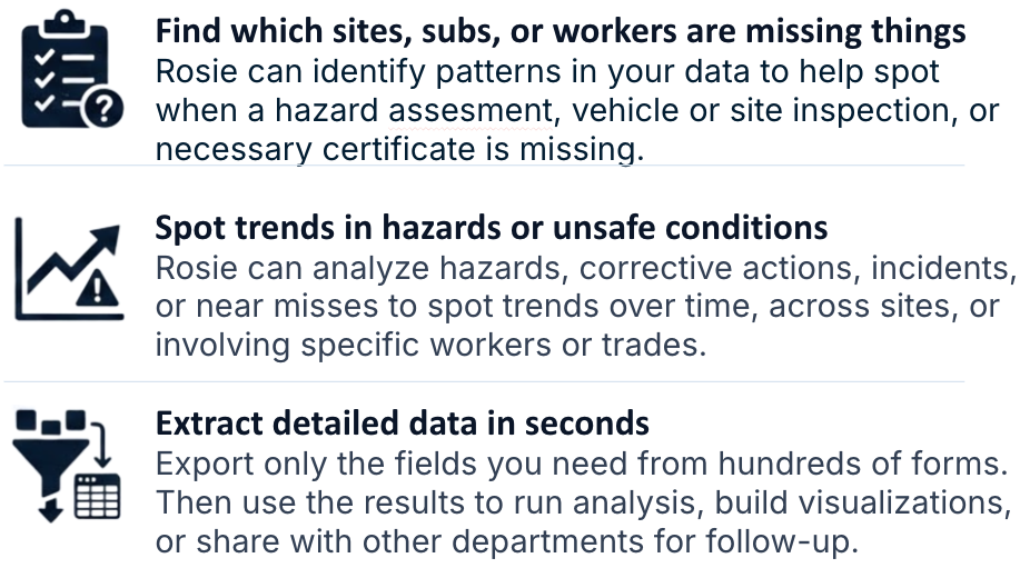 Rosie is a smart AI assistant built into SALUS that answers questions using your own safety data. Think of her as a knowledgeable teammate available any time, no special commands needed.